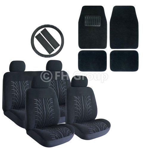 FH-FB071114 Travel Master Accessory Set: Seat Covers, Floor Mats, Steering Wheel and Seat Belt Pads, Airbag compatible and Split Bench, Solid Black